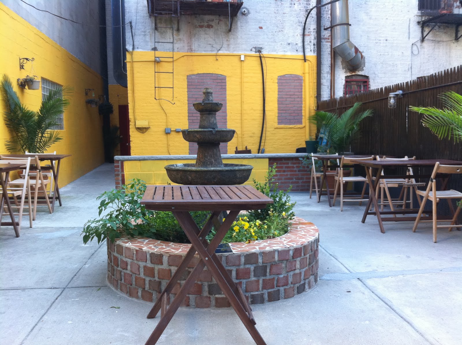 I visited this Mexican restaurant over the weekend. It is located on Myrtle Ave. in Bushwick, a couple of blocks away from DeKalb Ave. Inside the place is clean and well designed but what I liked the most was its back patio. The fountain in the middle could use some water and electricity for lights but the concept was what I liked. I could lay out a small plaza in the middle with the fountain as the focal point. I would also allow for some grass and planting space.