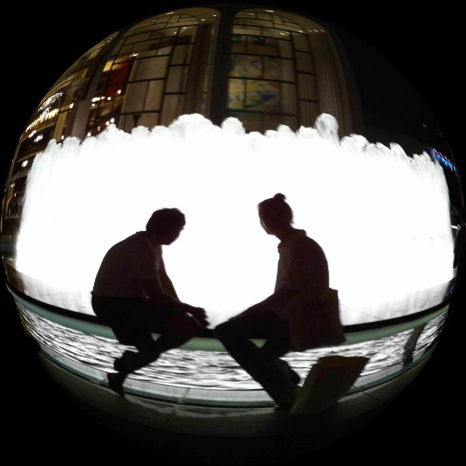 I drove through Queens and crossed the 59th street bridge. I found parking around 68th and walked towards Lincoln Center. The fountain was lit and people gathered around it, taking pictures, and admiring the symphony of water noises as the water from the fountain jumped all over the place.