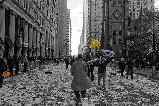 The parade took place in the Canyon of Heroes and there were thousands of people celebrating with the NY Bombers. At the end of the parade, after everyone took off, Broadway was left out littered with tons of papers and ticker tape. I was trying to get a photo of the street when this man cut me off and put himself in the frame. A soft breeze picked up his coat at the bottom and I snapped away.