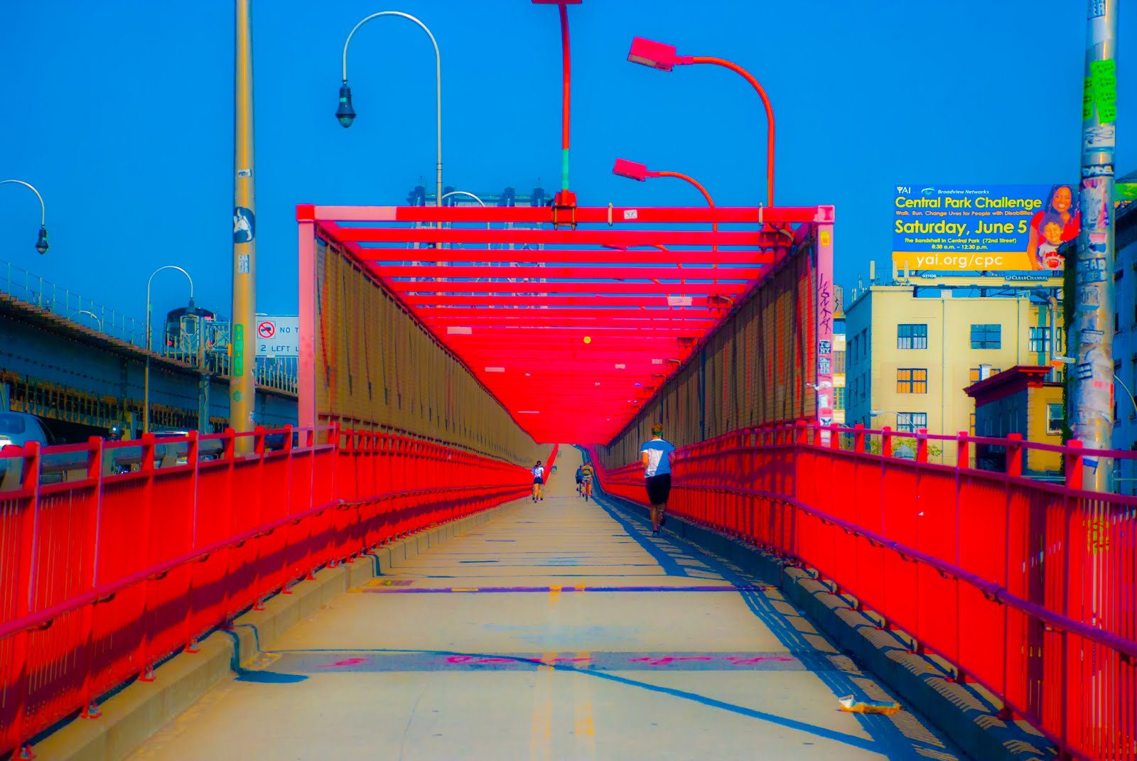 A couple of Saturdays ago I decided to cross the Williamsburg by foot. I grabbed my camera and started navigating my way through the cyclists and joggers. The walkway is now a tunnel of red iron. It looks, from the start, that you are walking into a time bending tunnel, just like in the movies. If you are coming from Brooklyn you will walk past old factories now converted to lofts. The broken and dirty windows still a reminder of years past. Just before you start walking above the water you meet an old friend of Brooklyn: the Domino's Sugar factory. It's sign still stands tall reminding us all that many years back it gave jobs to thousands of New Yorkers.